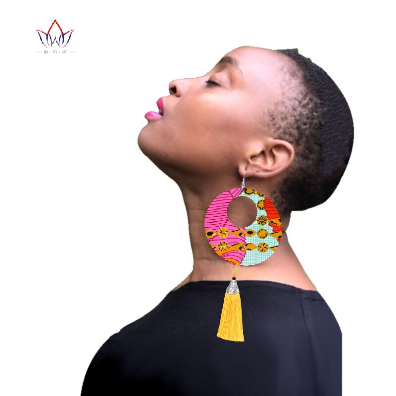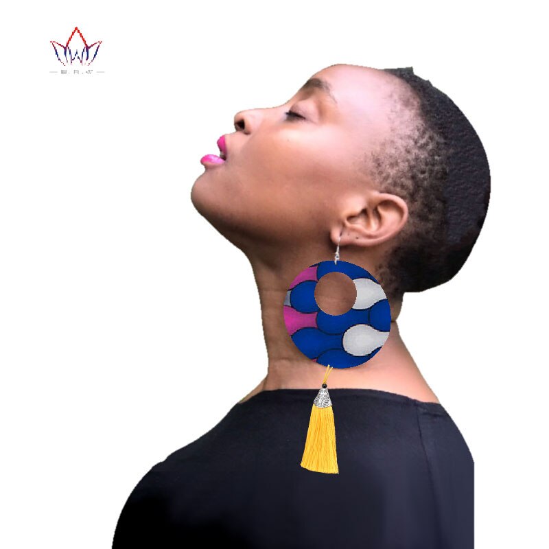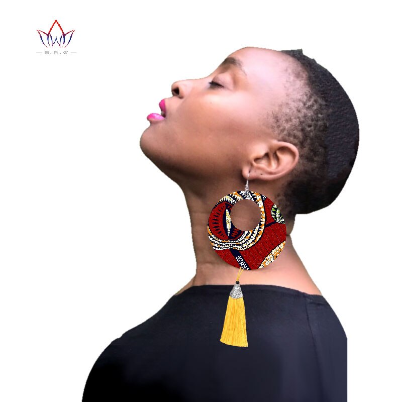 2019 African Cloth Fabric Earrings Handmade Earrings with Tassels for Women African Print Ankara Big Oversized Earrings SP032