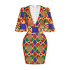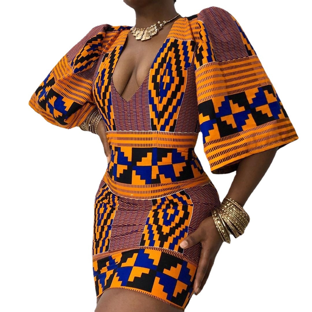 African Dresses for Women 2021 New Fashion Summer V-neck African Short Sleeve Printing Dress African Women Clothes