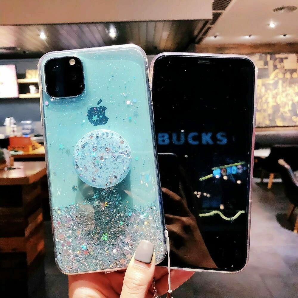 Bling Glitter Case For iPhone 11 Pro Max 11 Pro 11 XS XR X XS Max 6s 6 7 8 PlusSlim Case With Stand Holder Phone Cases Socket