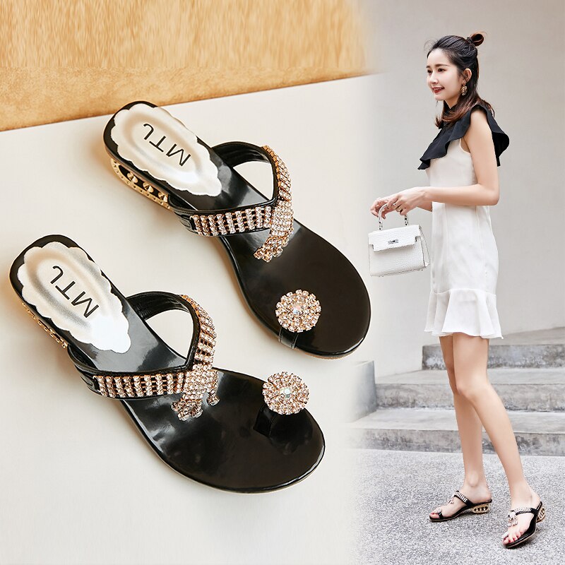 2020 Women Sandals Flip Flop Fashion Rhinestone Wedges Shoes Crystal High Heels Sandals Women Shoes Summer Casual Beach Sandals