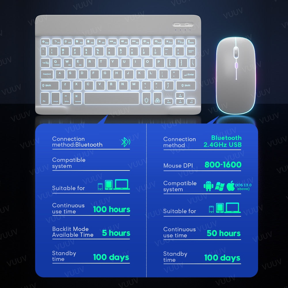 For iPad Tablet Keyboard With Backlit Teclado Wireless Bluetooth Keyboard and Mouse For Android Windows iOS Tablet Phone Laptop