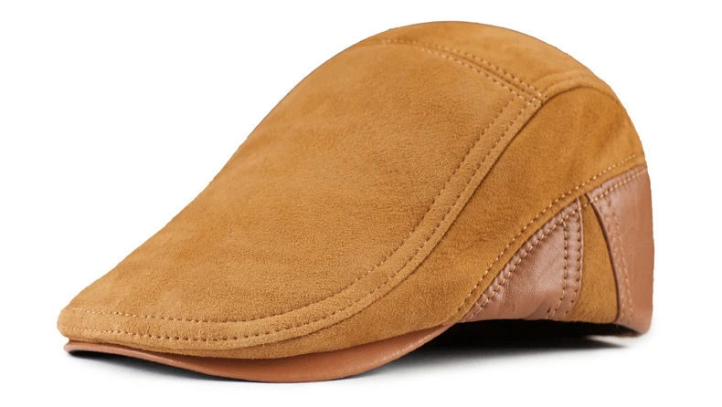 New Fashion Autumn Winter Berets Caps For Men Casual Real Leather Peaked Caps Retro Berets Hats Dad Hat Sheepskin Casquette Cap