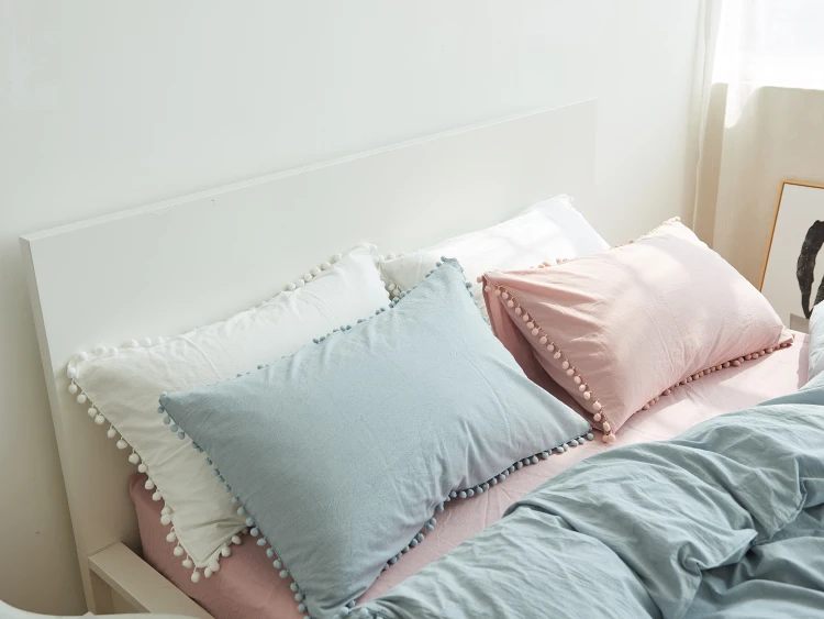 Washed Cotton Single Pillowcase White/Pink Bedroom Decorative Cute Ball Side Pillow Cases Girls Room Decoration Pillow Cover