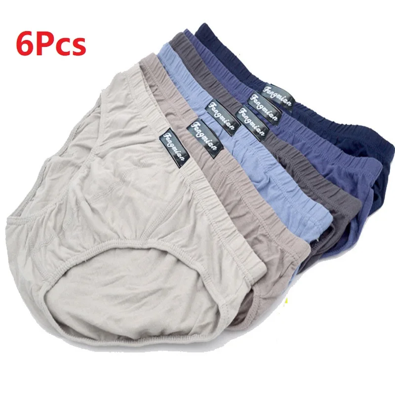 6Pcs/Lot Men'S Underwear Cotton Briefs Comfortable Loose Breathable Mid-Waist Large-Size Fat Young Brief