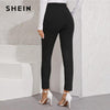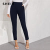 SHEIN Solid Elastic Waist Pocket Side Split Hem Elegant Pants Women Bottoms Autumn High Waist Office Ladies Skinny Trousers