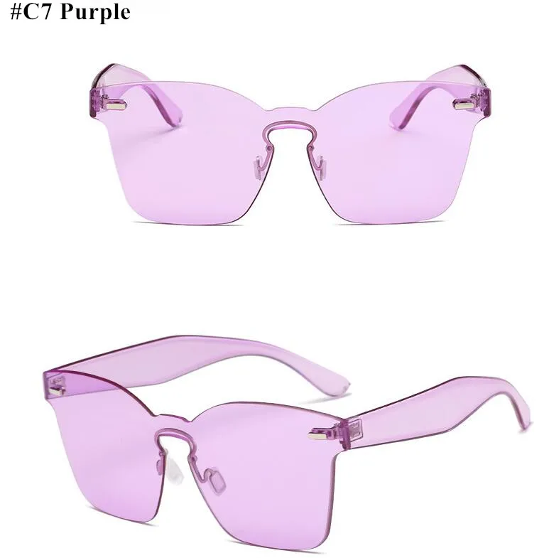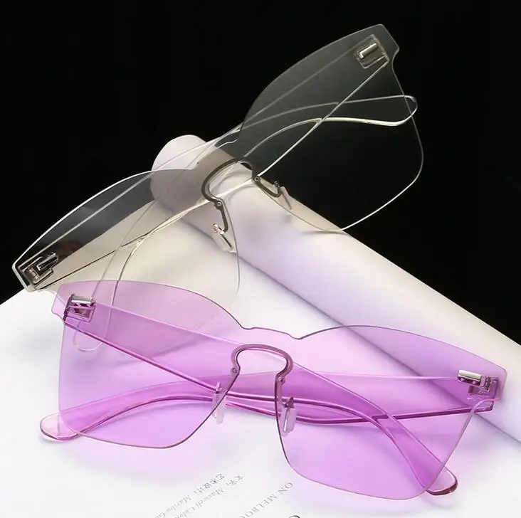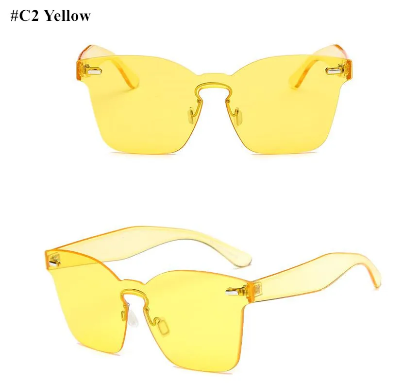 Candy Color Cat Eye Sunglasses Women Clear Lens Big Frame Shades Acetate Eyewear Ladies One Piece Rivet Sexy Sun Glasses Female