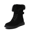 JIANBUDAN Women Boots Suede Leather Women Flat platform Mid-Calf Boots Ladies Shoes Fashion Winter Plush Fur warm Boots 34-43