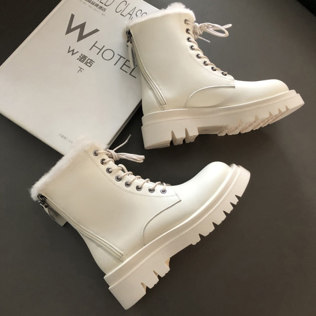 Women Split Leather Snow Boots Fashion Female Lace Up Platform Shoes Ladies Black Round Toe Zipper Style Ankle Boots 2021 Winter