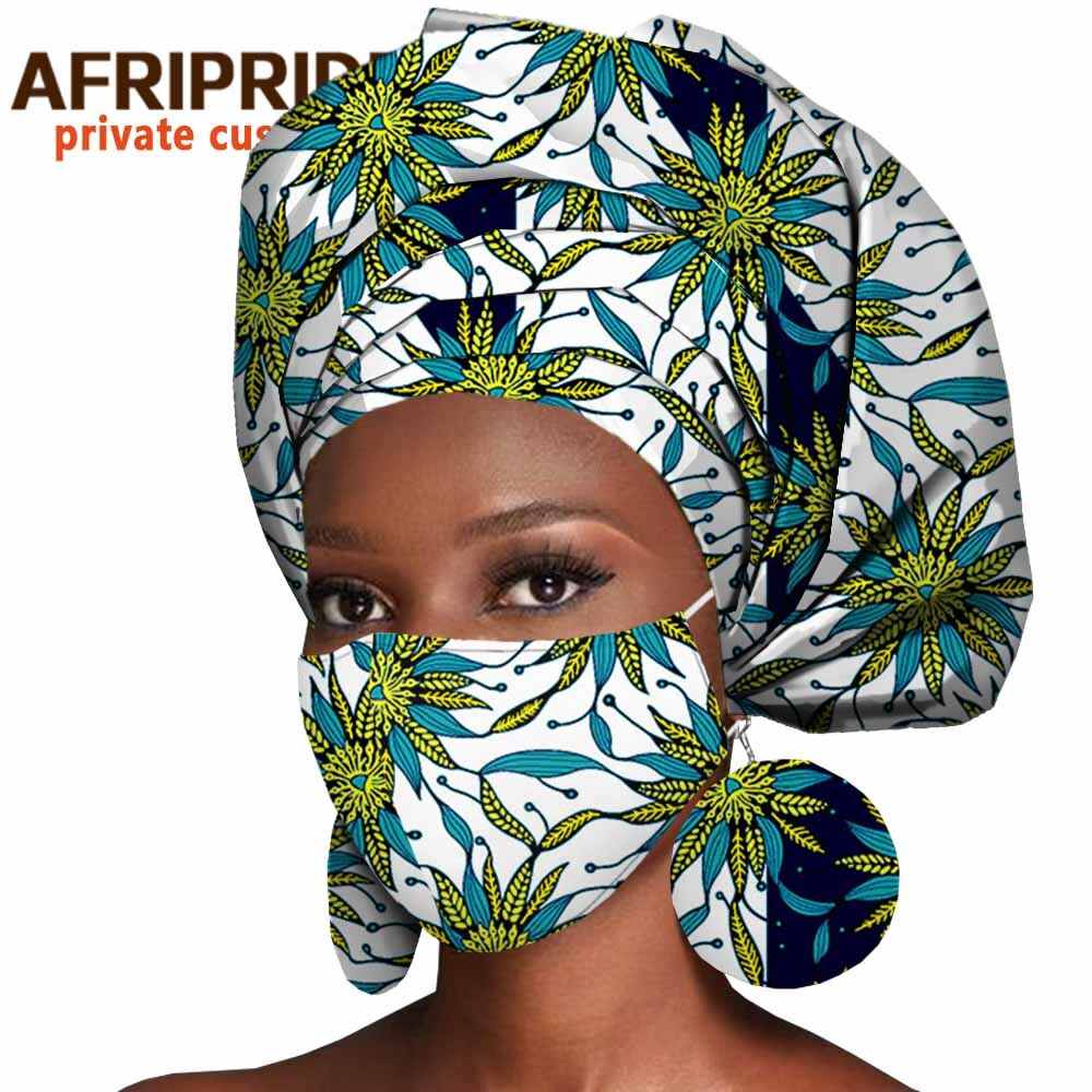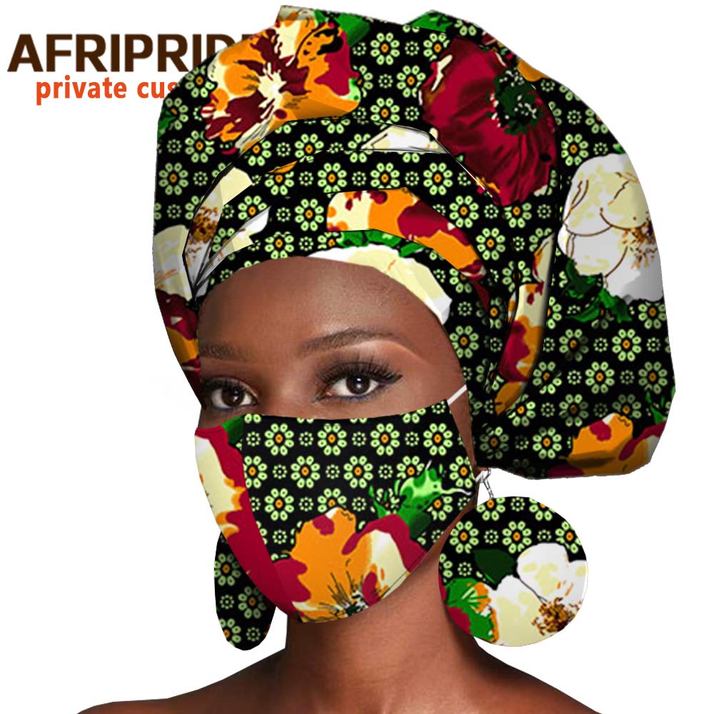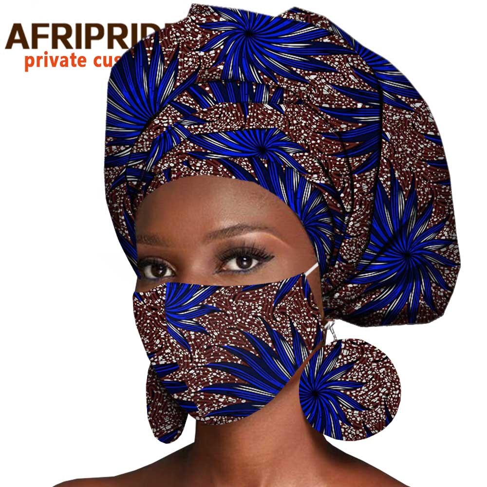 - African Headwrap Earrings Hair Accessories Scarf Bonnet Ankara Wax Fabric Head Turban African Headscarf Mask Match Print A20H004