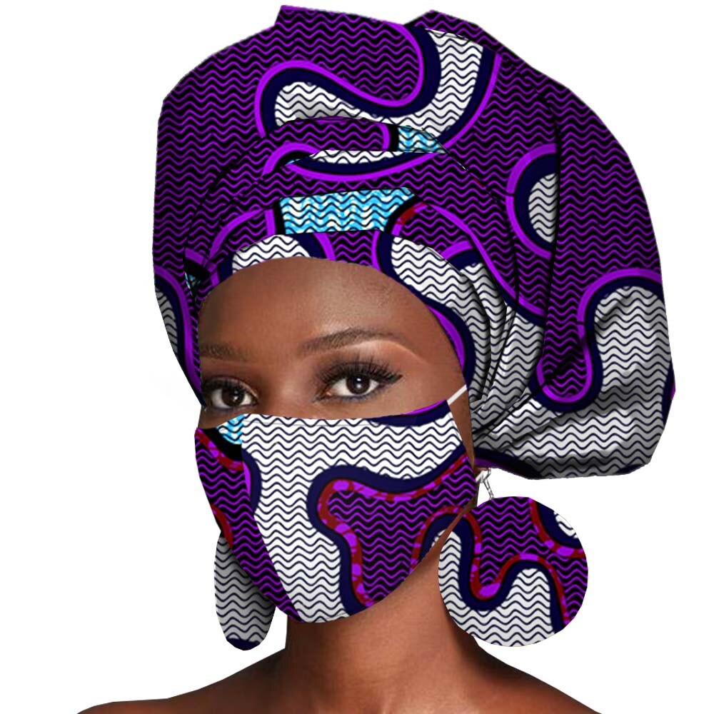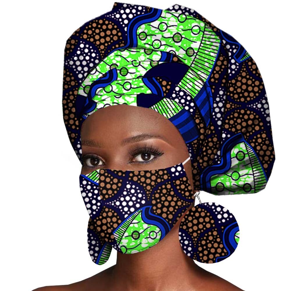 African Headwrap Earrings Hair Accessories Scarf Bonnet Ankara Wax Fabric Head Turban African Headscarf Mask Match Print A20H004