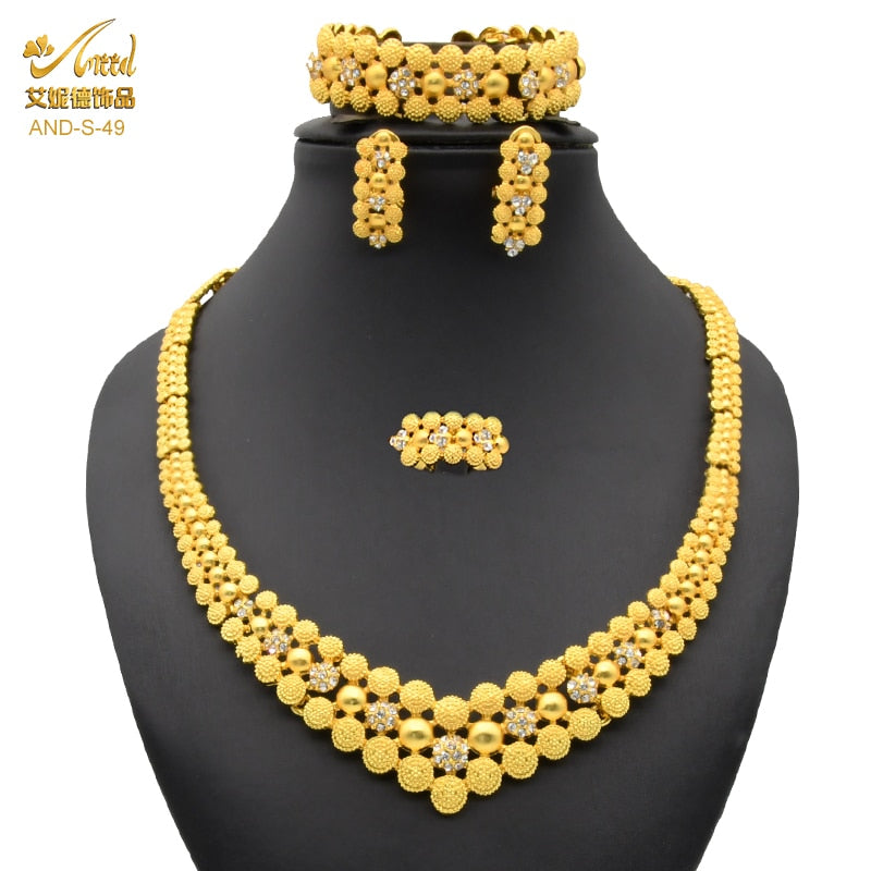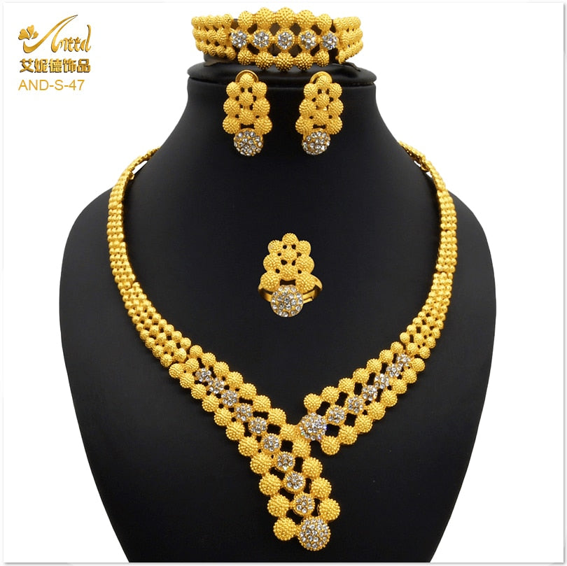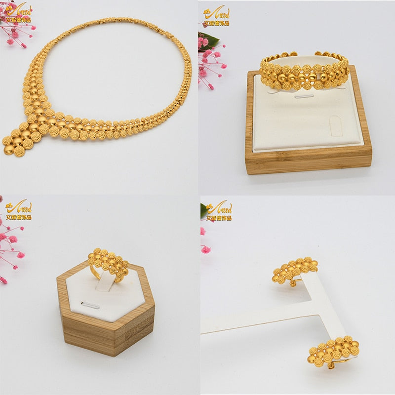 Jewelery Set Rings Jewelry Gold Plated Fashion Jewelries Women Bridal Wedding Dubai African Chokers Necklace Earrings Nigeria