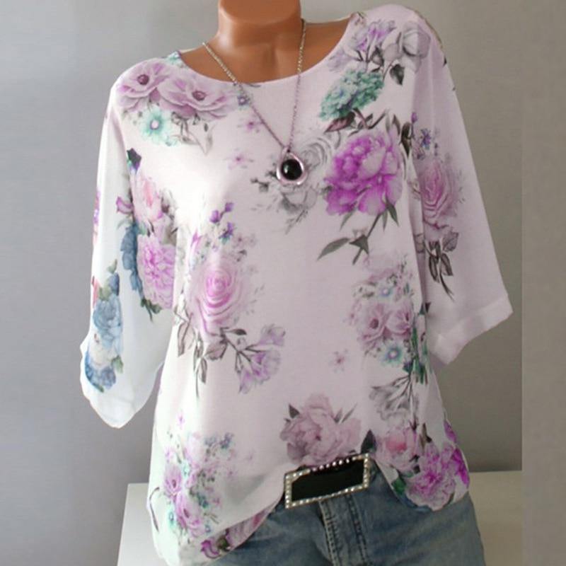 Summer Floral Print Women Blouse 5XL Plus Size Chiffon Blouses Half Sleeve Beach Shirt Office Work Shirts Blusas Feminina Tops