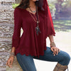 ZANZEA Women 2019 Autumn Elegant Lace Blouses Shirts Sexy V Neck Casual 3/4 Sleeve Asymmetrical Solid Blusas Tops Oversized