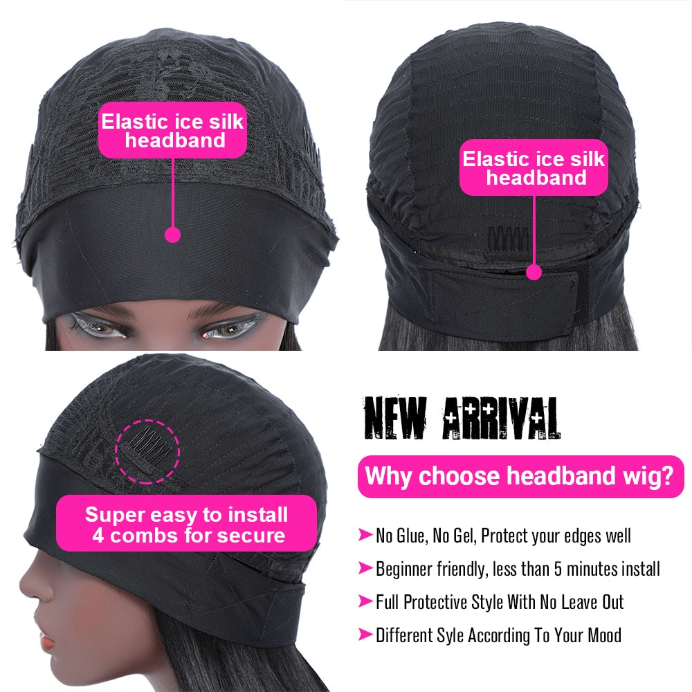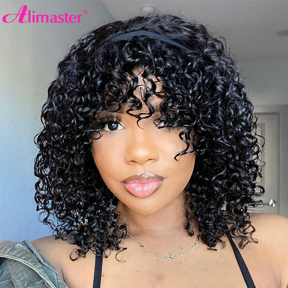 Headband Wig Human Hair Short Curly Wig Brazilian Remy Full Machine Made Headband Wig For Black Women Deep Wave Human Hair Wig