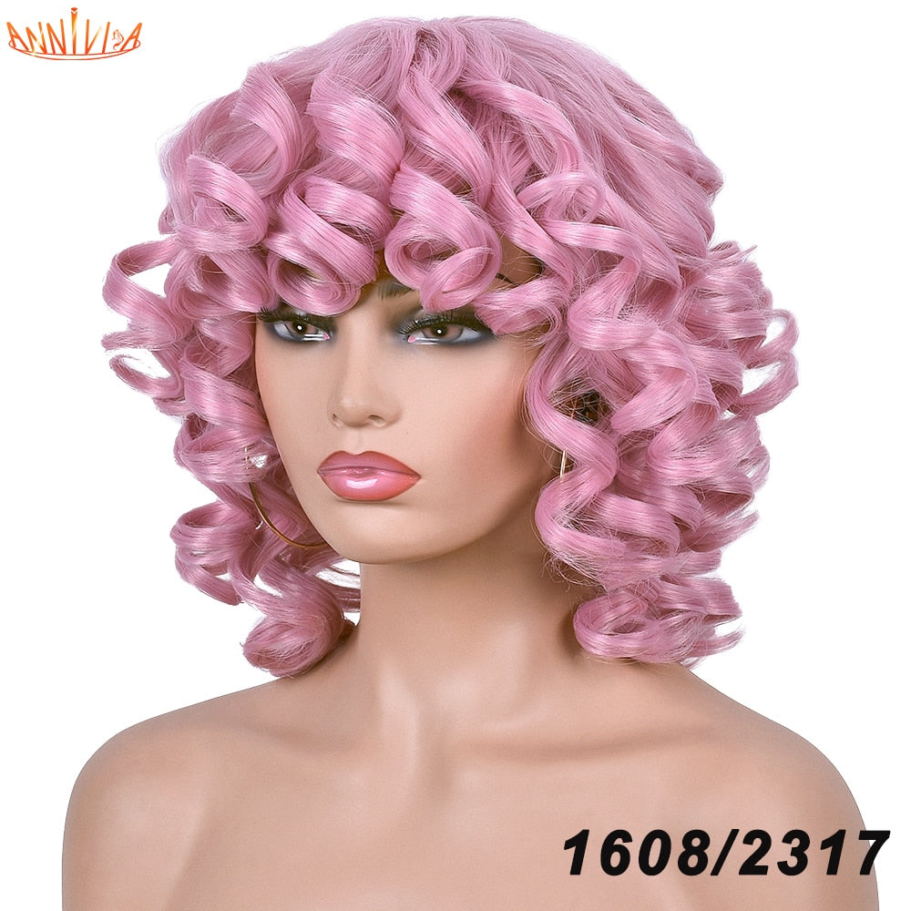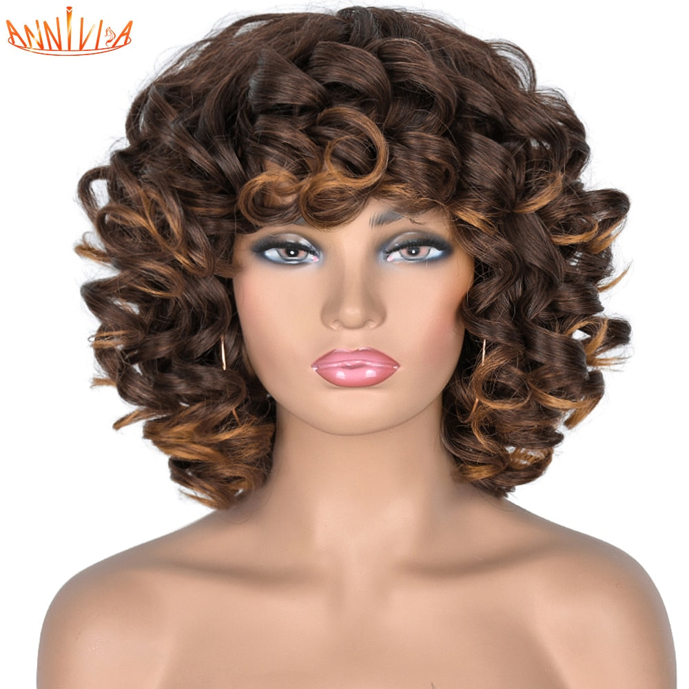 Short Hair Afro Kinky Curly Wigs With Bangs For Black Women Synthetic African Ombre Glueless Cosplay Wigs High Temperature