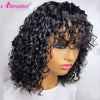 Water Wave Human Hair Wigs With Bangs Wavy Pixie Cut Short Bob Curly Human Hair Wig Brazilian Full Machine Made Wigs For Women