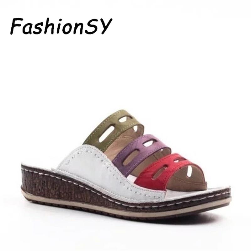 Wedge Heel Women Slippers Summer Women shoes Retro Stitching Low Beach Open Peep Toe Sandals 3 colors Shoes Slides woman shoes