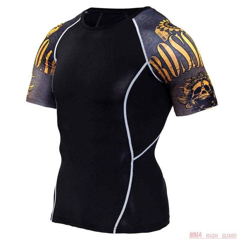 Compression T-shirt Men Running Tights Lycra Tee Shirt Male Bodybuilding Top Black Tees Men's Clothing Short Sleeve T-shirt
